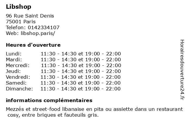 | Mercredi | 11:30-14:30 et 19:00-22:00 |