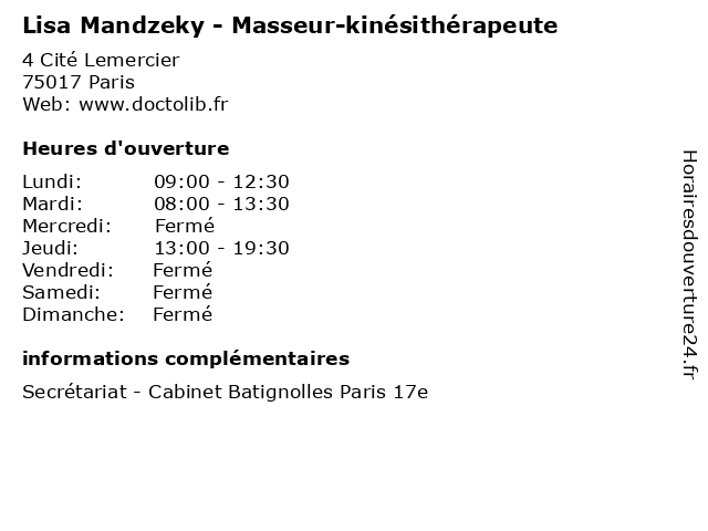 | Mercredi | Fermé |