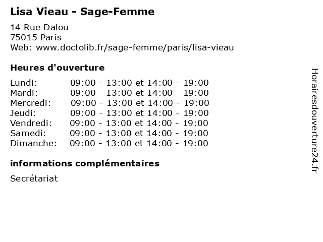 | Lundi | 09:00-13:00 et 14:00-19:00 |