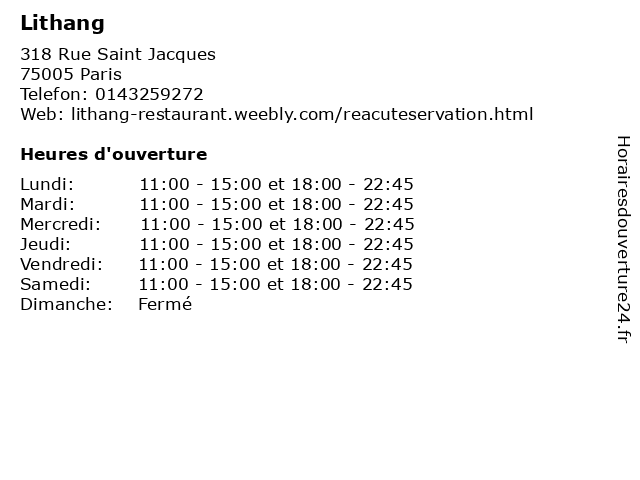 | Mardi | 11:00-15:00 et 18:00-22:45 |