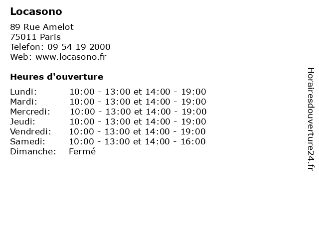 | Lundi | 10:00-13:00 et 14:00-19:00 |