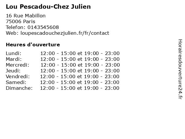 | Mardi | 12:00-15:00 et 19:00-23:00 |