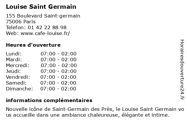 Termes de recherche pour Louise Saint Germain:bar, saint, germain, louise, restaurant français, restaurant pour le brunch, lieu de l'événement, organisateur d'événements |