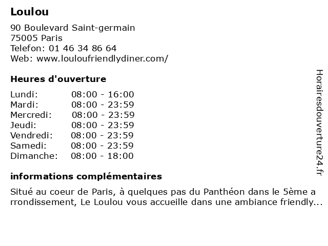 1 Restaurant Chez Loulou (Distance: 1,25 km) 63 Rue Rambuteau, 75004 Paris bar, boissons, chez, chouchou, cuisine française, loulou, restaurant, vin 2 Restaurant Loulou (Distance: 1,57 km) 107 rue de Rivoli, 75001 Paris brasserie, café, français, loulou, restaurant 4 Chez Loulou (Distance: 3,23 km) 51 Rue de Montreuil, 75011 Paris bar, brasserie, café, chez, loulou, restaurant, restauration 6 Chouchou & Loulou (Distance: 5,36 km) 28 Avenue du General de Gaulle, 93541 Bagnolet accesoires, cafe, chausseres, chouchou, enfants, homme, loulou, mode femmes, restaurant |