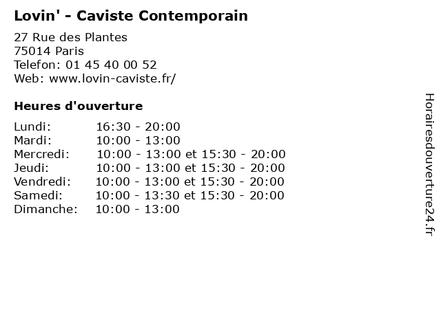 | Vendredi | 10:00-13:00 et 15:30-20:00 |