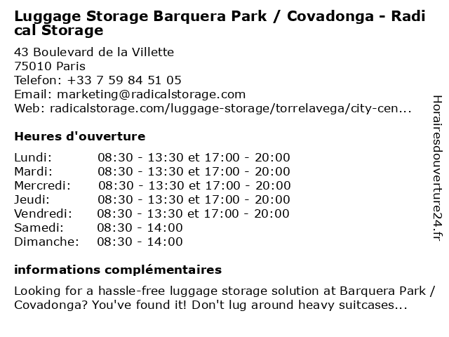 1 Luggage Storage Cité Rouge - Radical Storage (Distance: 0,00 km) 43 Boulevard de la Villette, 75010 Paris cité, luggage, luggage storage, luggage storage near me, radical, rouge, storage 2 Luggage Storage Av. Claude Vellefaux - Radical Storage (Distance: 0,20 km) 44 Avenue Claude Vellefaux, 75010 Paris av., claude, luggage, luggage storage, luggage storage near me, radical, storage, vellefaux 3 Nannybag Luggage Storage (Distance: 0,35 km) 1 Rue Vicq D'azir, 75010 Paris luggage, nannybag, storage 5 Nannybag Luggage Storage (Distance: 0,55 km) 43 Av. Simon Bolivar, 75019 Paris luggage, nannybag, storage 6 Nannybag Luggage Storage (Distance: 0,58 km) 38 Rue De Belleville, 75020 Paris luggage, nannybag, storage |