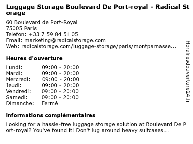 Termes de recherche pour Luggage Storage Boulevard De Port-royal - Radical Storage:royal, de, port, boulevard, radical, luggage, storage, luggage storage, luggage storage near me |