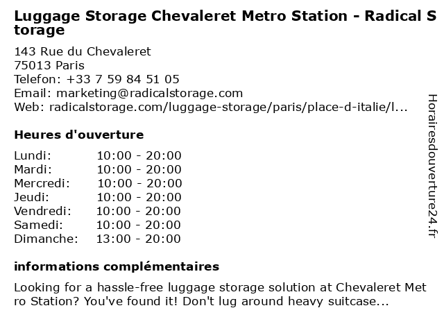 Termes de recherche pour Luggage Storage Chevaleret Metro Station - Radical Storage:station, métro, radical, luggage, storage, chevaleret, luggage storage, luggage storage near me |