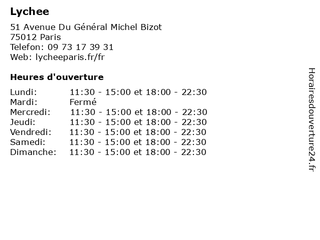 | Lundi | 11:30-15:00 et 18:00-22:30 |
