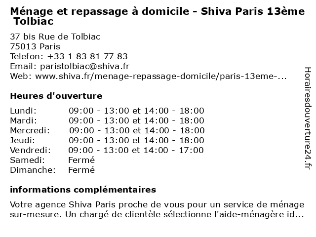 | Lundi | 09:00-13:00 et 14:00-18:00 |