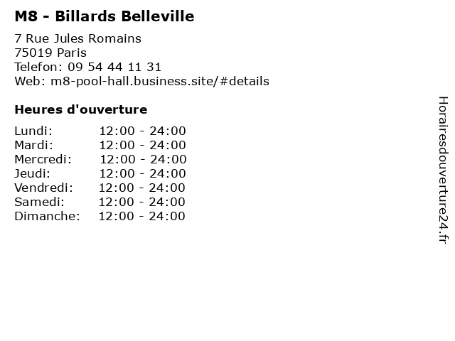 | Dimanche | 12:00-24:00 |