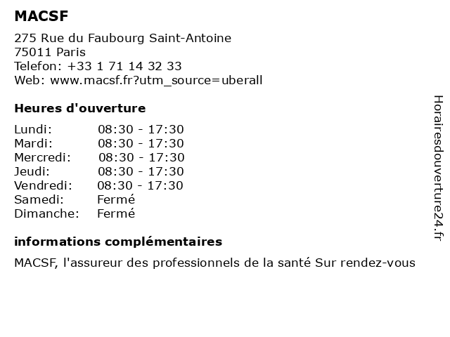 3 MACSF (Distance: 2,66 km) 113 Boulevard de l'Hôpital, 75013 Paris assurance, habitation, macsf, mutuelle, protection, prévoyance, santé 6 MACSF (Distance: 8,39 km) 12/14 Place du Gén. Koenig, 75017 Paris assurance vie, assurances, macsf, services |