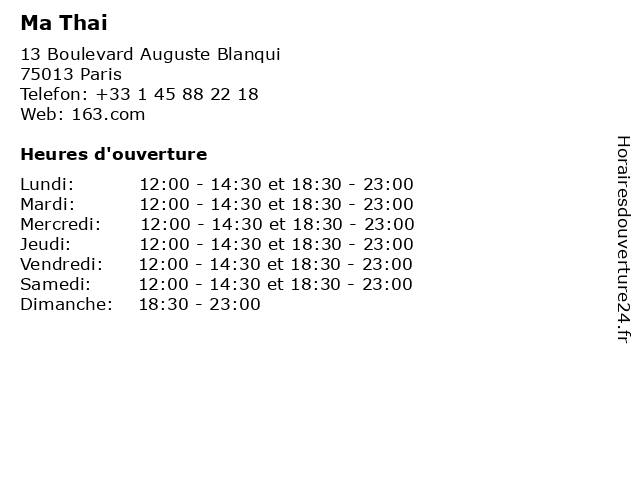 | Jeudi | 12:00-14:30 et 18:30-23:00 |