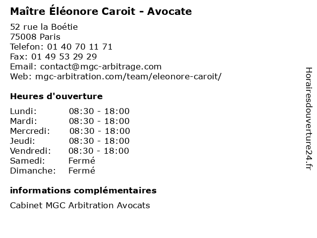 | Lundi | 08:30-18:00 |
