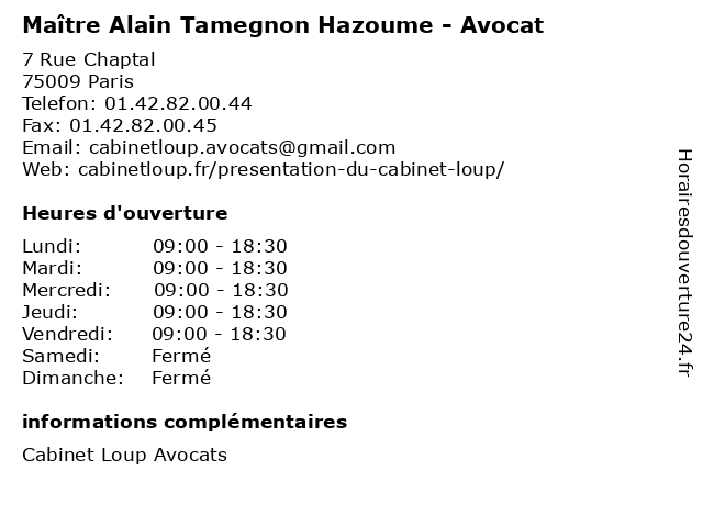 1 Maître Alain Tamegnon Hazoume - Avocat (Distance: 3,75 km) 2 rue de Poissy, 75005 Paris alain, avocat, avocats, cabinet, conseils, contentieux, hazoume, juridique, justice, litiges, maître, services, tamegnon 2 Dr Alain-Yves Urbany - Ophtalmologue (Distance: 0,38 km) 60 Rue Saint-Lazare, 75009 Paris alain, consultation, docteur, dr, libre, médecins, ophtalmologie, ophtalmologue, santé, urbany, yves 3 Dr Alain Cuffit - Angiologue (Distance: 0,65 km) 22 Rue de Turin, 75008 Paris alain, angiologue, cabinet, cuffit, dr, medical, secretariat, traitements, vasculaires 4 Dr Alain Granier - Chirurgien viscéral et digestif (Distance: 0,69 km) 13 rue de Turin, 75008 Paris alain, chirurgie, chirurgien, consultation, digestif, docteur, dr, dr., et, granier, santé, viscerale, viscéral 5 Dr Alain Lyon Caen - Cardiologue (Distance: 0,69 km) 7 Rue de Turin, 75008 Paris alain, caen, cardiologue, dr, lyon, médecin, médecine, médical, pharmaceutique, secrétariat, traitement 6 Dr Alain Margulies - Gastro-entérologue et hépatologue (Distance: 0,74 km) 27 Rue de Turin, 75008 Paris alain, consultation, docteur, dr, entérologue, et, gastro, gastroenterologie, hépatologue, margulies, santé |
