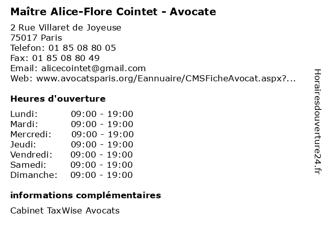 1 Maître Alice Paredes - Avocate (Distance: 0,48 km) 28 Avenue Victor Hugo, 75116 Paris alice, avocate, avocats, cabinet, conseils, contentieux, juridique, justice, litiges, maître, paredes, services 2 Maître Alice Allard - Avocate (Distance: 0,96 km) 50 Rue Boissière, 75116 Paris alice, allard, avocat, avocate, droit, maître, négociation 3 Dr Alice Burgess - ORL - Chirurgien de la face et du cou (Distance: 1,25 km) 26 Boulevard Victor Hugo, 92200 Neuilly-sur-Seine alice, burgess, chirurgien, cou, de, dr, du, et, face, la, laryngologie, orl, oto, rhino 4 Maître Alice Malaisé - Avocate (Distance: 1,38 km) 40 Rue de Courcelles, 75008 Paris alice, avocat, avocate, droit, malaisé, maître, négociation 5 Maître Alice Hourquebie - Avocate (Distance: 1,71 km) 7 Rue de Téhéran, 75008 Paris alice, avocate, avocats, cabinet, conseils, contentieux, hourquebie, juridique, justice, litiges, maître, services 6 Maître Alice Sich - Avocate (Distance: 1,74 km) 9 Avenue de Messine, 75008 Paris alice, avocat, avocate, droit, maître, négociation, sich |