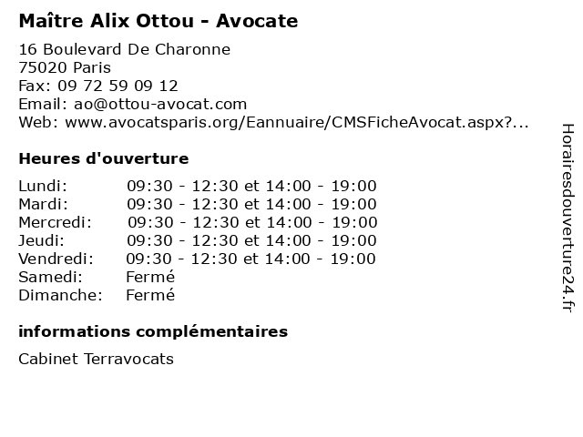 | Lundi | 09:30-12:30 et 14:00-19:00 |