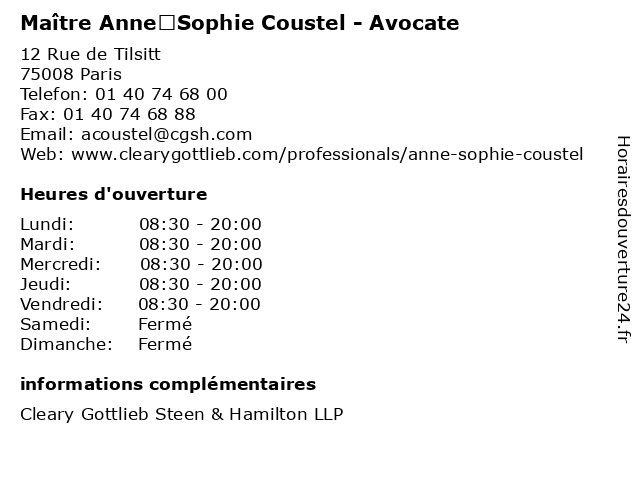 1 Maître Anne‑Sophie Coustel - Avocate (Distance: 0,00 km) 12 Rue de Tilsitt, 75008 Paris anne‑sophie, avocate, avocats, cabinet, conseils, contentieux, coustel, juridique, justice, litiges, maître, services 2 Maître Lauren Kelly‑Jones - Avocate (Distance: 0,00 km) 12 rue de Tilsitt, 75008 Paris avocate, avocats, cabinet, conseils, contentieux, juridique, justice, kelly‑jones, lauren, litiges, maître, services 3 Maître Jean‑Baptiste Combe - Avocat (Distance: 0,00 km) 12 rue de Tilsitt, 75008 Paris avocat, avocats, cabinet, combe, conseils, contentieux, jean‑baptiste, juridique, justice, litiges, maître, services 4 Maître Sophie Troussard‑Fauré - Avocate (Distance: 0,00 km) 12 Rue de Tilsitt, 75008 Paris avocat, avocate, droit, maître, négociation, sophie, troussard‑fauré 5 Maître Marie‑Laurence Tibi - Avocate (Distance: 0,00 km) 12 Rue de Tilsitt, 75008 Paris avocat, avocate, droit, marie‑laurence, maître, négociation, tibi 6 Maître Marie‑Agnès Nicolas - Avocate (Distance: 1,62 km) 4 Rue Cambacérès, 75008 Paris avocat, avocate, droit, marie‑agnès, maître, nicolas, négociation |