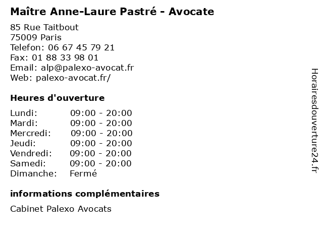 1 Maître Anne Carus - Avocate (Distance: 0,00 km) 85 Rue Taitbout, 75009 Paris anne, avocate, avocats, cabinet, carus, conseils, contentieux, juridique, justice, litiges, maître, services 2 Anne-Laure Hassan - Naturopathe (Distance: 0,09 km) 31 Rue Saint-Lazare, 75009 Paris anne, hassan, laure, medecin, naturopathe, plante, sante 3 Maître Laure Saget - Avocate (Distance: 0,23 km) 92 rue de la Victoire, 75009 Paris avocate, avocats, cabinet, conseils, contentieux, juridique, justice, laure, litiges, maître, saget, services 4 Laure Pomarede - Psychologue (Distance: 0,31 km) 53 Rue de la Chaussée d'Antin, 75009 Paris folie, laure, pomarede, psychiatre, psychiatrie, psychiatrique, psychologue 5 Anne-Laure Tardy - Ostéopathe (Distance: 0,55 km) 14 Boulevard Haussmann, 75009 Paris actes et symptômes, anne, expertises, laure, ostéopathe, ostéopathie pédiatrique, ostéopathie viscérale, tardy 6 Maître Anne-Laure Rastoul - Avocate (Distance: 0,68 km) 2 rue de la Chaussée d'Antin, 75009 Paris anne, avocate, avocats, cabinet, conseils, contentieux, juridique, justice, laure, litiges, maître, rastoul, services |
