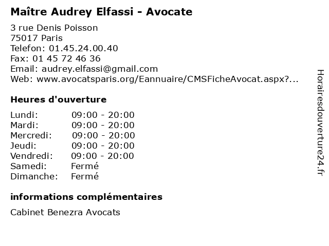 1 Maître Audrey Ovadia - Avocate (Distance: 0,17 km) 25 rue Saint Ferdinand, 75017 Paris audrey, avocate, avocats, cabinet, conseils, contentieux, juridique, justice, litiges, maître, ovadia, services 2 Maître Audrey Clément - Avocate (Distance: 0,34 km) 6 Rue Duret, 75116 Paris audrey, avocat, avocate, clément, droit, maître, négociation 3 Maître Audrey Lemal - Avocate (Distance: 0,98 km) 217 rue du Faubourg Saint Honoré, 75008 Paris audrey, avocate, avocats, cabinet, conseils, contentieux, juridique, justice, lemal, litiges, maître, services 4 Audrey Bonnet - Psychologue (Distance: 1,09 km) 10 Rue Galilée, 75116 Paris audrey, bonnet, folie, psychiatre, psychiatrie, psychiatrique, psychologue 5 Audrey Babouin - Sage-femme (Distance: 1,14 km) 4 Rue Louise Michel, 92300 Levallois Perret audrey, babouin, bien-être, en, femme, forme, kinésithérapie, remise, rééducation, sage 6 Audrey Amsallem - Psychologue (Distance: 1,18 km) 101 Rue de Prony, 75017 Paris amsallem, audrey, cabinet, dr, medical, psychologue, secretariat |