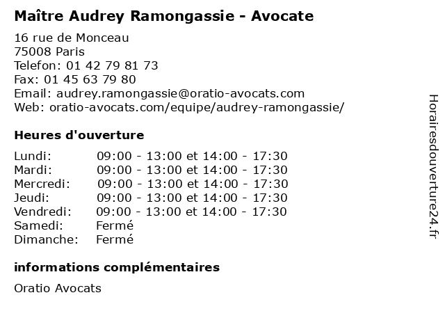 | Lundi | 09:00-13:00 et 14:00-17:30 |