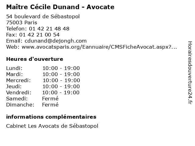 1 Maître Cécile Jousselin - Avocate (Distance: 0,10 km) 323 rue Saint Martin, 75003 Paris avocate, avocats, cabinet, conseils, contentieux, cécile, jousselin, juridique, justice, litiges, maître, services 2 Pédicure-Podologue Cécile Goethals (Distance: 0,25 km) 35 Rue Chapon, 75003 Paris cécile, docteur, goethals, médecine, podiatre, podologue, pédicure 3 Maître Cécile Hakim-Bonnerot - Avocate (Distance: 0,38 km) 57 Rue Réaumur, 75002 Paris avocate, avocats, bonnerot, cabinet, conseils, contentieux, cécile, hakim, juridique, justice, litiges, maître, services 4 Dr Cécile Filippi - Médecin généraliste (Distance: 0,49 km) 14 Rue Volta, 75003 Paris centre, cécile, de, docteur, dr, filippi, generaliste, généraliste, medical, médecin, pouzin, santé, soin, yvonne 5 Cécile & Jeanne (Distance: 0,92 km) 19 rue Ferdinand Duval, 75004 Paris bijouterie, bijoux, cécile, fantaisie, jeanne 6 Maison Cécile & Jeanne (Distance: 0,93 km) 14 rue des Rosiers, 75004 Paris bijouterie, bijoux, cécile, fantaisie, jeanne, maison |