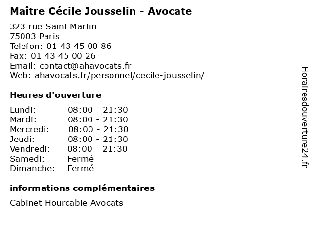 Horaires d'ouverture |