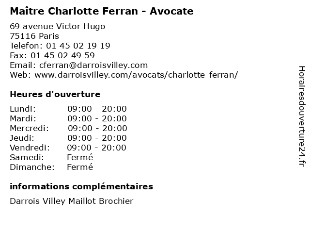 1 Maître Charlotte Pignet - Avocate (Distance: 0,00 km) 21 avenue Victor Hugo, 75116 Paris avocate, avocats, cabinet, charlotte, conseils, contentieux, juridique, justice, litiges, maître, pignet, services 2 Maître Charlotte Peignon - Avocate (Distance: 0,00 km) 72 Avenue Victor Hugo, 75116 Paris avocate, avocats, cabinet, charlotte, conseils, contentieux, juridique, justice, litiges, maître, peignon, services 3 Maître Charlotte Riberprey - Avocate (Distance: 0,00 km) 174 Avenue Victor Hugo, 75116 Paris avocat, avocate, charlotte, droit, maître, négociation, riberprey 4 Maître Charlotte Martinez - Avocate (Distance: 0,08 km) 1 bis avenue Foch, 75116 Paris avocat, avocate, charlotte, droit, martinez, maître, négociation 5 Maître Marie-Charlotte de Casalta - Avocate (Distance: 0,24 km) 28 Avenue Victor Hugo, 75116 Paris avocate, avocats, cabinet, casalta, charlotte, conseils, contentieux, de, juridique, justice, litiges, marie, maître, services 6 Maître Charlotte Baillot - Avocate (Distance: 0,32 km) 116 avenue des Champs-Elysées, 75008 Paris avocat, avocate, baillot, charlotte, droit, maître, négociation |