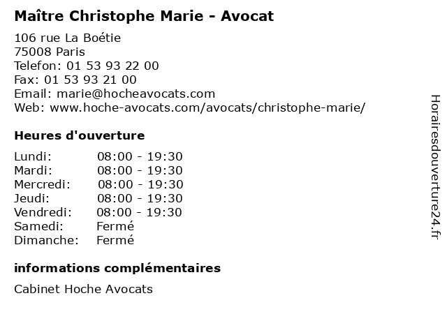 | Lundi | 08:00-19:30 |