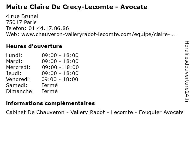 1 Maître Martin Lecomte - Avocat (Distance: 0,00 km) 4 rue Brunel, 75017 Paris avocat, avocats, cabinet, conseils, contentieux, juridique, justice, lecomte, litiges, martin, maître, services 2 Maître Claire Teillard d’Eyry - Avocate (Distance: 0,09 km) 5 rue Denis Poisson, 75017 Paris avocate, avocats, cabinet, claire, conseils, contentieux, d’eyry, juridique, justice, litiges, maître, services, teillard 4 Maître Claire Port - Avocate (Distance: 0,26 km) 43-47 avenue de la Grande Armée, 75116 Paris avocate, avocats, cabinet, claire, conseils, contentieux, juridique, justice, litiges, maître, port, services 5 Madame Claire Carli (Distance: 0,57 km) 3 Rue Poncelet, 75017 Paris boucheries, carli, claire, madame, poissonneries 6 Claire Dousset - Avocate (Distance: 0,66 km) 19 Avenue Victor Hugo, 75116 Paris avocat, avocate, bureau, claire, dousset, droit, service |