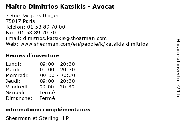 1 Maître Dimitrios Kogeorgos - Avocat (Distance: 1,21 km) 90 rue d’Amsterdam, 75009 Paris avocat, avocats, cabinet, conseils, contentieux, dimitrios, juridique, justice, kogeorgos, litiges, maître, services 2 Maître Dimitrios Papageorgiou - Avocat (Distance: 2,39 km) 8 Place d'Iéna, 75116 Paris avocat, dimitrios, droit, maître, négociation, papageorgiou 3 Dr Dimitrios Korovesis - Echographiste (Distance: 6,19 km) 147 Boulevard Charles de Gaulle, 92700 Colombes dimitrios, dr, echographiste, korovesis, médecin, médecine, médical, pharmaceutique, secrétariat, traitement 4 Dr Dimitrios Korovesis - Radiologue (Distance: 8,52 km) 52 Avenue du Général Michel Bizot, 75012 Paris consultation, dimitrios, docteur, dr, korovesis, med, médecin, radiologue, traitement 5 Dr Dimitrios Vordos - Chirurgien urologue (Distance: 14,16 km) 51 Avenue du Maréchal de Lattre de Tassigny, 94000 Créteil chirurgien, consultation, dimitrios, docteur, dr, med, medecine, medical, médecin, traitement, urologue, vordos 6 Maître Laurent Asquin - Avocat (Distance: 0,00 km) 7 rue Jacques Bingen, 75017 Paris asquin, avocat, droit, laurent, maître, négociation |
