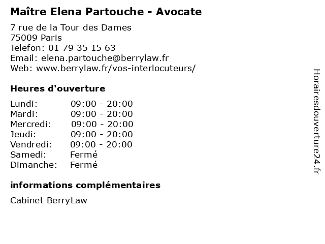 1 Maître Sacha-Abraham Partouche - Avocat (Distance: 0,12 km) 9 Rue Jean-Baptiste Pigalle, 75009 Paris abraham, avocat, avocats, cabinet, conseils, contentieux, juridique, justice, litiges, maître, partouche, sacha, services 2 Dr Lauren Partouche - Chirurgien-dentiste (Distance: 0,37 km) 22 Rue d'Athènes, 75009 Paris chirurgien, consultation, dentiste, docteur, dr, lauren, med, médecin, médecine, partouche, secrétariat, traitement 3 Maître Elena Fedorova - Avocate (Distance: 0,52 km) 34 boulevard Haussmann, 75009 Paris avocate, avocats, cabinet, conseils, contentieux, elena, fedorova, juridique, justice, litiges, maître, services 4 Dr Elena Lorang - Chirurgien-dentiste (Distance: 0,57 km) 21 Rue Chauchat, 75009 Paris chirurgie, chirurgien, dentaire, dentiste, dr, elena, lorang 5 Maître Claudia-Elena Cicone - Avocate (Distance: 0,89 km) 18 Square Édouard VII, 75009 Paris avocate, avocats, cabinet, cicone, claudia, conseils, contentieux, elena, juridique, justice, litiges, maître, services 6 Dr Joelle Partouche - Médecin morphologique et anti-âge (Distance: 0,95 km) 22 Rue Saint-Augustin, 75002 Paris anti, consultation, docteur, dr, et, joelle, med, morphologique, médecin, médecine, partouche, secrétariat, traitement, âge |