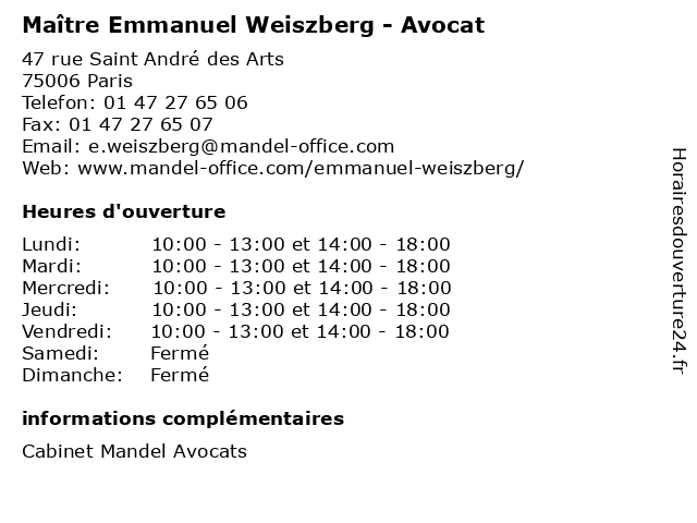 | Lundi | 10:00-13:00 et 14:00-18:00 |