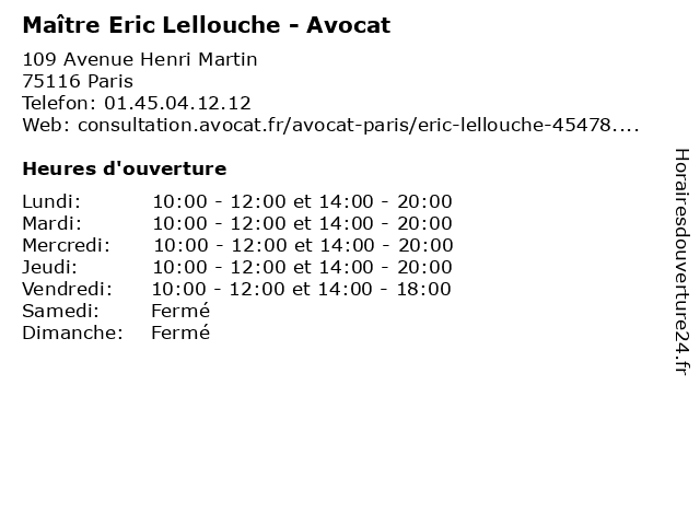 | Lundi | 10:00-12:00 et 14:00-20:00 |