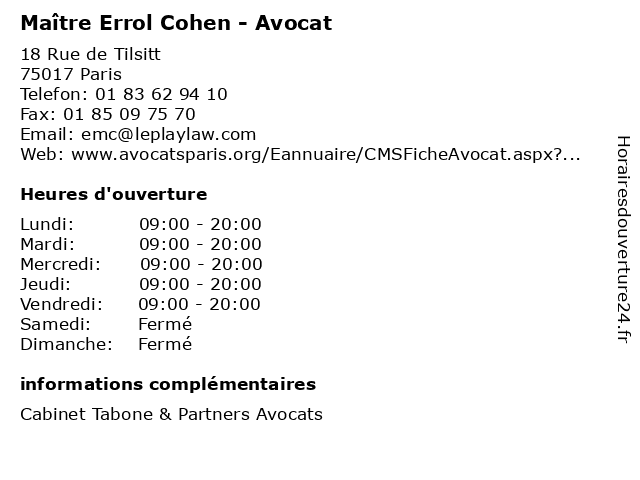 1 Dr. Cohen Martine - Chirurgien Dentiste (Distance: 0,23 km) 12 Avenue de la Grande Armée, 75017 Paris chirurgien, cohen, dentiste, docteur, dr., martine, medecins, sante 2 Dr Ethan Cohen - Chirurgien-dentiste (Distance: 0,30 km) 21 Avenue des Ternes, 75017 Paris chirurgien, cohen, dentiste, dr, ethan, médecin, médecine, médical, pharmaceutique, secretariat, traitement 3 Maître Gilles R. Cohen - Avocat (Distance: 0,30 km) 50 Avenue Foch, 75116 Paris avocat, avocats, cabinet, cohen, conseils, contentieux, gilles, juridique, justice, litiges, maître, r., services 4 Maître Deborah Cohen - Avocate (Distance: 0,49 km) 43-47 avenue de la Grande Armée, 75116 Paris avocate, avocats, cabinet, cohen, conseils, contentieux, deborah, juridique, justice, litiges, maître, services 5 Maître Coty Cohen Belassein - Avocat (Distance: 0,53 km) 7 Rue Marcel Renault, 75017 Paris avocat, avocats, belassein, cabinet, cohen, conseils, contentieux, coty, juridique, justice, litiges, maître, services 6 Dr. Michele Cohen- Dentiste (Distance: 0,72 km) 3 Rue Theodore de Banville, 75017 Paris cohen, dentiste, docteur, dr., medecins, michele, sante |
