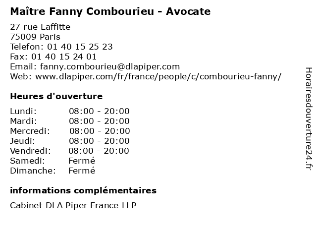 1 Maître Fanny Velasco - Avocate (Distance: 0,27 km) 5 Rue de Provence, 75009 Paris avocate, avocats, cabinet, conseils, contentieux, fanny, juridique, justice, litiges, maître, services, velasco 2 Maître Fanny Sachel - Avocate (Distance: 0,44 km) 5-7 Rue D’Aumale, 75009 Paris avocate, avocats, cabinet, conseils, contentieux, fanny, juridique, justice, litiges, maître, sachel, services 3 Maître Fanny Marsaut - Avocate (Distance: 0,66 km) 1-3 Rue Lulli, 75002 Paris avocate, avocats, cabinet, conseils, contentieux, fanny, juridique, justice, litiges, marsaut, maître, services 4 Maître Fanny Audrain - Avocate (Distance: 0,94 km) 65 rue Montmartre, 75002 Paris audrain, avocate, avocats, cabinet, conseils, contentieux, fanny, juridique, justice, litiges, maître, services 5 Fanny Lemoine - Masseur-kinésithérapeute (Distance: 1,20 km) 20 Rue de la Pépinière, 75008 Paris docteur, fanny, kinésithérapeute, lemoine, masseur, médecin, médecine, secrétariat 6 Dr Fanny Perez - Cardiologue (Distance: 1,47 km) 3 Rue Bernoulli, 75008 Paris cardiologue, dr, fanny, médecin, médecine, médical, perez, pharmaceutique, secretariat, traitement |