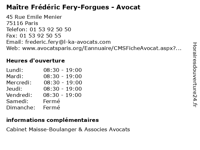 1 Maître Frédéric Niel - Avocat (Distance: 0,33 km) 127 Rue de la Faisanderie, 75116 Paris avocat, avocats, cabinet, conseils, contentieux, frédéric, juridique, justice, litiges, maître, niel, services 2 Dr Frédéric Morvan - Gynécologue obstétricien (Distance: 0,66 km) 15 Avenue d'Eylau,, 75116 Paris dr, frédéric, gynécologue, morvan, médecins, médicaments, obstétricien, santé, secrétariat, spécialiste 3 Maître Frédéric Bellanca - Avocat (Distance: 0,84 km) 6 Rue Duret, 75116 Paris avocat, bellanca, droit, frédéric, maître, négociation 4 Dr Frédéric Preaux - Radiologue (Distance: 0,85 km) 43 Rue Cortambert, 75116 Paris dr, frédéric, médecin, médecine, médical, pharmaceutique, preaux, radiologue, secretariat, traitement 5 Dr Frédéric Zeitoun - Radiologue (Distance: 0,85 km) 43 Rue Cortambert, 75116 Paris dr, frédéric, médecin, médecine, médical, pharmaceutique, radiologue, secretariat, traitement, zeitoun 6 Maître Frédéric Sardain - Avocat (Distance: 0,92 km) 11 rue Galilée, 75116 Paris avocat, droit, frédéric, maître, négociation, sardain |