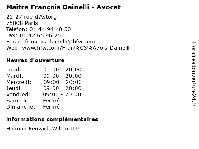 1 Maître Jean-François Burc - Avocat (Distance: 0,08 km) 15 Rue d’Astorg, 75008 Paris avocat, avocats, burc, cabinet, conseils, contentieux, françois, jean, juridique, justice, litiges, maître, services 2 Maître François Bonteil - Avocat (Distance: 0,18 km) 1 rue d'Astorg, 75008 Paris avocat, avocats, bonteil, cabinet, conseils, contentieux, françois, juridique, justice, litiges, maître, services 3 Maître Jean-François Levraud - Avocat (Distance: 0,23 km) 15 Rue de Laborde, 75008 Paris avocat, droit, françois, jean, levraud, maître, négociation 4 Maître Jean-François Louit - Avocat (Distance: 0,23 km) 15 Rue de Laborde, 75008 Paris avocat, droit, françois, jean, louit, maître, négociation 5 Maître François Vergne - Avocat (Distance: 0,23 km) 15 Rue de Laborde, 75008 Paris avocat, droit, francois, françois, maître, négociation, vergne 6 Maître François Bossé-Cohic - Avocat (Distance: 0,23 km) 15 Rue de Laborde, 75008 Paris avocat, bossé, cohic, droit, françois, maître, négociation |