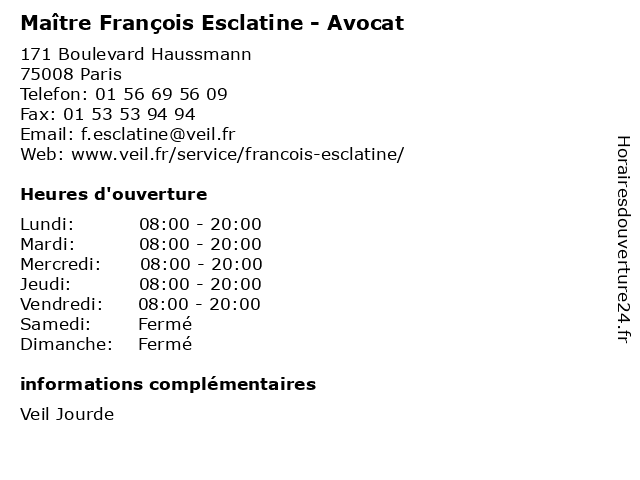 1 Maître Pierre-François Veil - Avocat (Distance: 0,00 km) 171 Boulevard Haussmann, 75008 Paris avocat, droit, françois, maître, négociation, pierre, veil 2 Maître Jean-François Colin - Avocat (Distance: 0,09 km) 163 rue du Faubourg Saint-Honoré, 75008 Paris avocat, colin, droit, françois, jean, maître, négociation 3 Maître François Sabatier - Avocat (Distance: 0,09 km) 50 Rue de Berri, 75008 Paris avocat, avocats, cabinet, conseils, contentieux, françois, juridique, justice, litiges, maître, sabatier, services 4 Maître François-Xavier Langlais - Avocat (Distance: 0,12 km) 37 rue de Courcelles, 75008 Paris avocat, droit, françois, langlais, maître, négociation, xavier 5 Maître François Baroin - Avocat (Distance: 0,14 km) 43 rue de Courcelles, 75008 Paris avocat, baroin, droit, françois, maître, négociation 6 Dr Jean-François Chiche - Radiologue (Distance: 0,14 km) 192 Boulevard Haussmann, 75008 Paris chiche, consultation, docteur, dr, françois, jean, med, médecin, radiologue, traitement  |