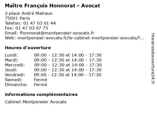 1 Maître François-Pierre Lani - Avocat (Distance: 0,11 km) 5 Avenue de l'Opéra, 75001 Paris avocat, droit, françois, lani, maître, négociation, pierre 2 Maître Jean-François Carreras - Avocat (Distance: 0,24 km) 20 avenue de l'Opéra, 75001 Paris avocat, avocats, cabinet, carreras, conseils, contentieux, françois, jean, juridique, justice, litiges, maître, services 3 Maître François-Régis Gaboriau - Avocat (Distance: 0,33 km) 194 rue de Rivoli, 75001 Paris avocat, avocats, cabinet, conseils, contentieux, françois, gaboriau, juridique, justice, litiges, maître, régis, services 4 Maître François Fourmeaux - Avocat (Distance: 0,44 km) 1-3 Rue Lulli, 75002 Paris avocat, droit, fourmeaux, françois, maître, négociation 5 François Beretta - Spécialiste en médecines douce et alternative (Distance: 0,49 km) 29 Place du Marché Saint-Honoré, 75001 Paris alternative, beretta, consultation, docteur, douce, en, et, françois, med, médecin, médecines, spécialiste, traitement 6 Dr Jean-François Rocamora - Psychiatre (Distance: 0,51 km) 52 Rue Étienne Marcel, 75002 Paris dr, folie, francois, françois, jean, psychiatre, psychiatrie, psychiatrique, rocamora |