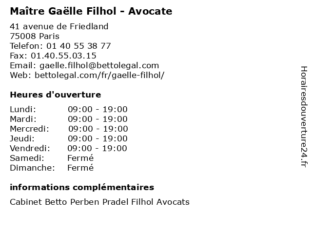 1 Maître Gaëlle Bodet - Avocate (Distance: 0,00 km) 41 Avenue de Friedland, 75008 Paris avocat, avocate, bodet, droit, gaëlle, maître, négociation 2 Maître Gaëlle Menu-Lejeune - Avocate (Distance: 0,62 km) 32-34 Avenue Kléber, 75016 Paris avocat, avocate, droit, gaëlle, lejeune, maître, menu, négociation 3 Maître Gaëlle Hascoët - Avocate (Distance: 0,76 km) 164 Rue du Faubourg Saint-Honoré, 75008 Paris avocat, avocate, droit, gaëlle, hascoët, maître, négociation 4 Maître Gaëlle Godard - Avocat (Distance: 0,91 km) 13 Rue du Docteur Lancereaux, 75008 Paris avocat, gaëlle, godard, justice, lois, maitre, maître 5 Maître Gaëlle Le Quillec - Avocate (Distance: 1,09 km) 8 Place d'Iéna, 75116 Paris avocat, avocate, droit, gaëlle, le, maître, négociation, quillec 6 Dr Gaëlle Guettrot-Imbert - Allergologue (Distance: 1,59 km) 26 Rue Jouffroy d'Abbans, 75017 Paris allergologue, consultation, docteur, dr, gaëlle, guettrot, imbert, med, médecin, médecine, secrétariat, traitement |