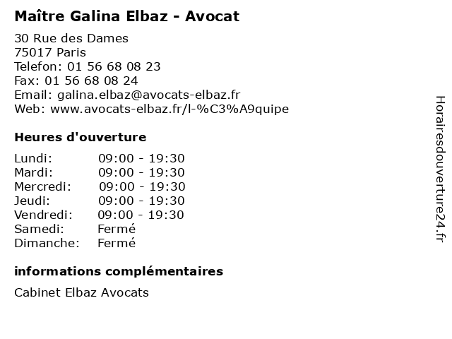 1 Maître Magda Elbaz - Avocat (Distance: 0,00 km) 30 Rue des Dames, 75017 Paris avocat, avocats, cabinet, conseils, contentieux, elbaz, juridique, justice, litiges, magda, maître, services 2 Dr Moïse Elbaz - Chirurgien-dentiste (Distance: 0,88 km) 32 Boulevard de Courcelles, 75017 Paris chirurgien, consultation, dentiste, docteur, dr, elbaz, med, moïse, médecin, traitement 3 Dr Georges Elbaz - Chirurgien-dentiste (Distance: 0,98 km) 6 Rue de Laborde, 75008 Paris chirurgien, chirurgien-dentiste, dentiste, dr, elbaz, georges, médecins, médicaments, santé, secrétariat, spécialiste 4 Maître Galina Petrova - Avocate (Distance: 1,70 km) 5 boulevard de la Madeleine, 75001 Paris avocat, avocate, droit, galina, maître, négociation, petrova 5 Maître Rachel Elbaz-Drai - Avocate (Distance: 1,96 km) 7 Avenue Gourgaud, 75017 Paris avocate, avocats, cabinet, conseils, contentieux, drai, elbaz, juridique, justice, litiges, maître, rachel, services 6 Elbaz Francis (Distance: 2,39 km) 85 Rue des Rosiers, 93400 Saint-Ouen architecture, art forain, bijoux, céramiques, elbaz, francis, mobilier, peintures & arts graphiques |