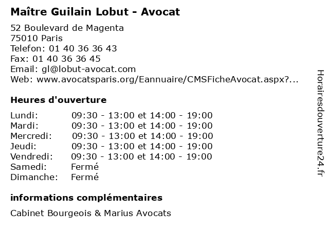 1 Maître Guilain Hippolyte - Avocat (Distance: 4,73 km) 112 Avenue Kléber, 75116 Paris avocat, droit, guilain, hippolyte, maître, négociation 2 Maître Rebecca Royer - Avocate (Distance: 0,00 km) 52 Boulevard de Magenta, 75010 Paris avocat, avocate, justice, lois, maitre, maître, rebecca, royer 3 Maître Martin Scialom - Avocat (Distance: 0,00 km) 52 Boulevard de Magenta, 75010 Paris avocat, avocats, cabinet, conseils, contentieux, juridique, justice, litiges, martin, maître, scialom, services 4 Maître Jérôme Consigli - Avocat (Distance: 0,00 km) 52 Boulevard de Magenta, 75010 Paris avocat, avocats, cabinet, conseils, consigli, contentieux, juridique, justice, jérôme, litiges, maître, services 5 Maître Foucauld Prache - Avocat (Distance: 0,00 km) 52 Boulevard de Magenta, 75010 Paris avocat, avocats, cabinet, conseils, contentieux, foucauld, juridique, justice, litiges, maître, prache, services 6 Maître Jean-Pierre Berthilier - Avocat (Distance: 0,21 km) 60 Boulevard de Strasbourg, 75010 Paris avocat, avocats, berthilier, cabinet, conseils, contentieux, jean, juridique, justice, litiges, maître, pierre, services |