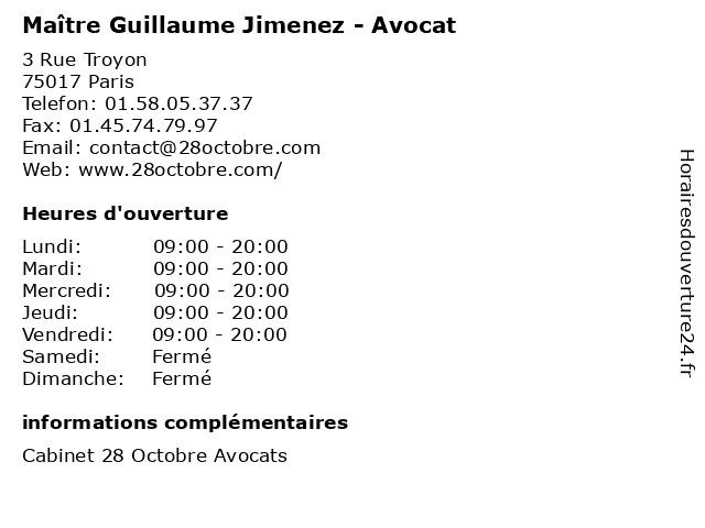 1 Maître Guillaume Gimenez - Avocat (Distance: 0,00 km) 3 rue Troyon, 75017 Paris avocat, avocats, cabinet, conseils, contentieux, gimenez, guillaume, juridique, justice, litiges, maître, services 2 Maître Guillaume Valois - Avocat (Distance: 0,18 km) 52 avenue Hoche, 75008 Paris avocat, droit, guillaume, maître, négociation, valois 3 Maître Guillaume Dubos - Avocat (Distance: 0,25 km) 9 Rue Anatole de la Forge, 75017 Paris avocat, droit, dubos, guillaume, maître, négociation 4 Maître Guillaume Rivet - Avocat (Distance: 0,28 km) 41 Rue des Acacias, 75017 Paris avocat, droit, guillaume, maître, négociation, rivet 5 Maître Guillaume Ferrand - Avocat (Distance: 0,33 km) 41 Avenue de Friedland, 75008 Paris avocat, droit, ferrand, guillaume, maître, négociation 6 Maître Guillaume de Ternay - Avocat (Distance: 0,43 km) 16 Avenue de Friedland, 75008 Paris avocat, de, droit, guillaume, maître, négociation, ternay |