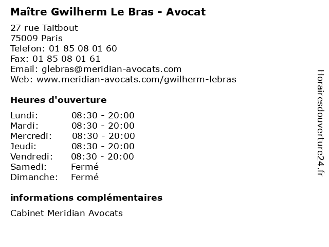 | Lundi | 08:30-20:00 |