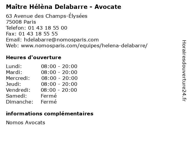 1 Maître Hélèna Houbron - Avocate (Distance: 0,69 km) 55 Avenue Marceau, 75016 Paris avocate, avocats, cabinet, conseils, contentieux, houbron, hélèna, juridique, justice, litiges, maître, services 2 Maître Hélèna Vrignaud - Avocate (Distance: 2,87 km) 2-8 Rue Ancelle, 92200 Neuilly-sur-Seine avocate, avocats, civils, droits, hélèna, juridiques, maître, vrignaud 3 Maître Hélèna Ramalho-Claudio - Avocate (Distance: 14,84 km) 41 Rue de la Paroisse, 78000 Versailles avocate, avocats, civils, claudio, droits, hélèna, juridiques, maître, ramalho 4 Cabinet HD Conseil & Patrimoine - Hélèna DEBATY (Distance: 21,15 km) 6 Rue de la Plaine, 78860 Saint-Nom-la-Bretèche banque, cabinet, conseil, conseiller, debaty, gestion, hd, hélèna, investissement, patrimoine, patrimoniale 5 Les Jardins D'Hélèna (Distance: 27,54 km) 31 Chemin des Pâtures, 78480 Verneuil-sur-Seine d'hélèna, jardins, les 6 Maître Pascal Agboyibor - Avocat (Distance: 0,00 km) 63 avenue des Champs-Elysées, 75008 Paris agboyibor, avocat, avocats, cabinet, conseils, contentieux, juridique, justice, litiges, maître, pascal, services |