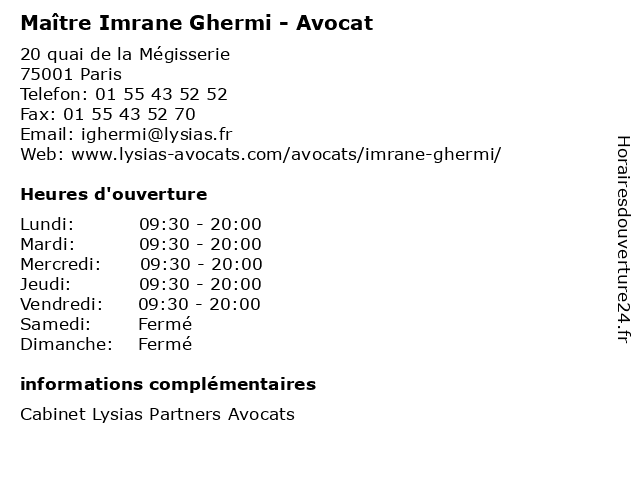 | Lundi | 09:30-20:00 |
