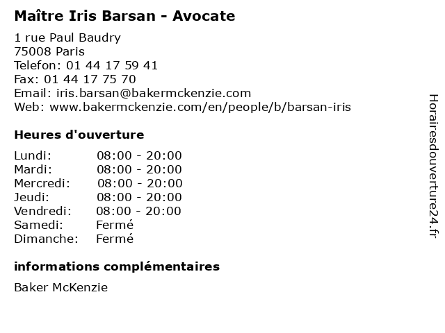 1 Maître Iris Federico - Avocate (Distance: 0,38 km) 5 rue Berryer, 75008 Paris avocate, avocats, cabinet, conseils, contentieux, federico, iris, juridique, justice, litiges, maître, services 2 Maître Iris Sauvagnac - Avocate (Distance: 0,49 km) 17 Avenue Matignon, 75008 Paris avocat, avocate, droit, iris, maître, négociation, sauvagnac 3 Maître Iris Vögeding - Avocate (Distance: 0,99 km) 25-27 rue d'Astorg, 75008 Paris avocat, avocate, droit, iris, maître, négociation, vögeding 4 Maître Iris Le Flour - Avocate (Distance: 1,06 km) 15 Rue de Laborde, 75008 Paris avocate, avocats, cabinet, conseils, contentieux, flour, iris, juridique, justice, le, litiges, maître, services 5 Iris Vincent - Masseur-kinésithérapeute (Distance: 1,59 km) 255 Rue Saint Honoré, 75001 Paris docteur, iris, kinésithérapeute, masseur, médecin, médecine, secrétariat, vincent 6 Maître Iris Nakov - Avocate (Distance: 1,59 km) 91 avenue Kleber, 75116 Paris avocate, avocats, cabinet, conseils, contentieux, iris, juridique, justice, litiges, maître, nakov, services |