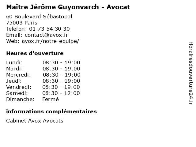 | Lundi | 08:30-19:00 |