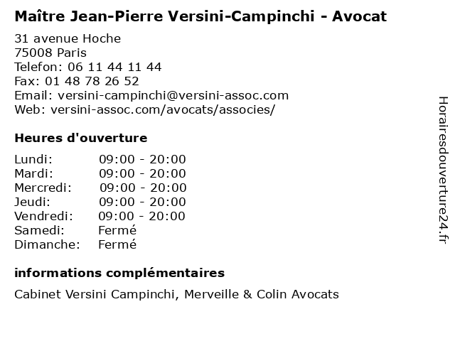 2 Maître François Versini-Campinchi - Avocat (Distance: 0,37 km) 136 avenue des Champs Elysées, 75008 Paris avocat, campinchi, droids, françois, justice, maître, versini 3 Dr Françoise Campinchi Tardy - Ophtalmologue (Distance: 0,61 km) 33-35 Rue de Chazelles, 75017 Paris campinchi, dr, françoise, ophtalmologie, ophtalmologistes, ophtalmologue, tardy, vision 4 Dr Isabelle Goubin-Versini - Anatomiste et cytologiste pathologique (Distance: 25,70 km) 6 avenue de l'Ile-de-France, 95303 Pontoise anatomie, anatomiste, ch, cytologie, cytologiste, dr, dubos, et, goubin, isabelle, patho, pathologique, pontoise, rené, versini 5 Maître Jérôme Bersay - Avocat (Distance: 0,00 km) 31 avenue Hoche, 75008 Paris avocat, bersay, droit, jérôme, maître, négociation 6 Jean Pradal - Avocat (Distance: 0,13 km) 25 Rue Balzac, 75008 Paris avocat, avocats, droit, jean, lois, pradal, service |